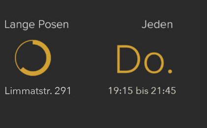 Die Posen dauern von 1 Minute bis 15 Minuten. Von 20.25 bis 20.45 gibt es eine Pause.